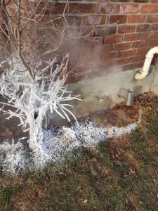 4. “It’s ?20?C in Toronto today. The steam from this pipe immediately froze onto the grass and bush.”