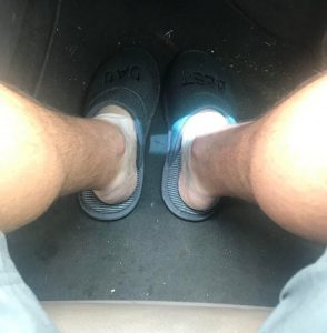 12. “Headed to the airport and halfway there, I looked down. Thanks for the Father’s Day gift, kids, the slippers are very comfortable.”