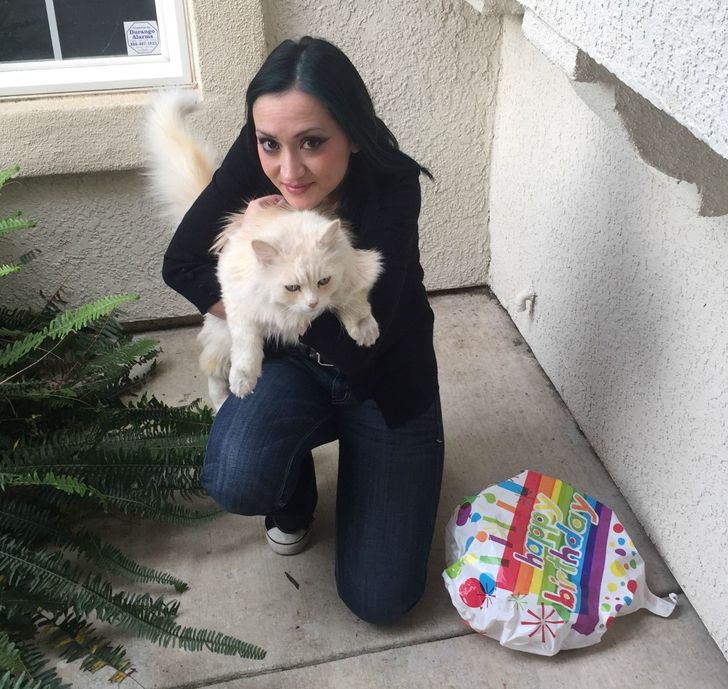 5. “My cat has a cleft palate. It helps her to hold onto straws she’s brought back from the hunt. She looks so proud.”