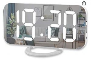 2. A rotating digital alarm clock, this high-tech gem has a wake-up alarm, a mirrored screen, and two USB ports. Charge all your devices and wake up on time!
