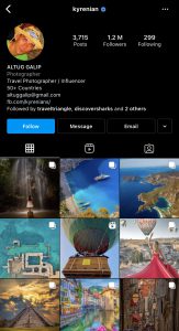 With an influencer score of 96 (from Klear), Murad is a Russian photographer and is well known for his famous Follow Me To campaign. His photos of holding his wife’s hand while she looks back had become a famous trend across the globe. He along with his wife is named the world’s top travel influencer.
