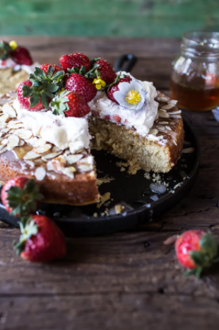 4) Almond Honey Cake With Strawberry Ripple Cream