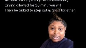 “Number nine, crying is allowed for 20 minutes. Then you will be asked to step out and get it together. I don’t need all that sadness in the atmosphere. I know you love me, I probably love you too, but I’m gone. I’m with you in spirit now.”