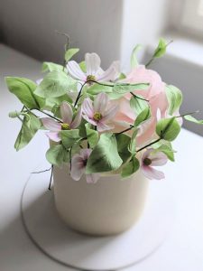 1. White Ganache cake with sugar flowers