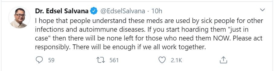 Americans, as expected, have begun hoarding Chloroquine and it’s not available for the people who actually need it to treat other conditions like lupus and rheumatoid arthritis.