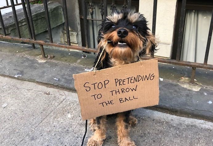 Doggos don’t like being bamboozled. Pretending to the throw the ball in the doggo world is equivalent of a disappointing clickbait in the human world.