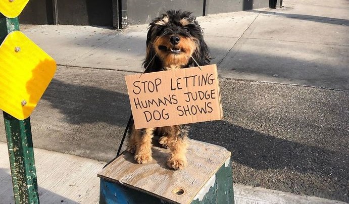 Jokes aside, this is a serious issue. Dog shows are cruel and should be made illegal on the accounts that they encourage unnatural breeding of dogs and those dogs suffer with unnatural bone structure and diseases throughout their lives. Just so that a bunch of humans can find them cute.