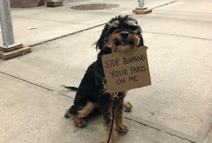 In all honesty, dog farts don’t smell like rotten garlic and putrid eggs – so if you let out a stinky one, just own up to it. It’s fine, dogs know that humans are gross. And your dog doesn’t judge you for farting, but he definitely will judge you if you blame the fart on him.