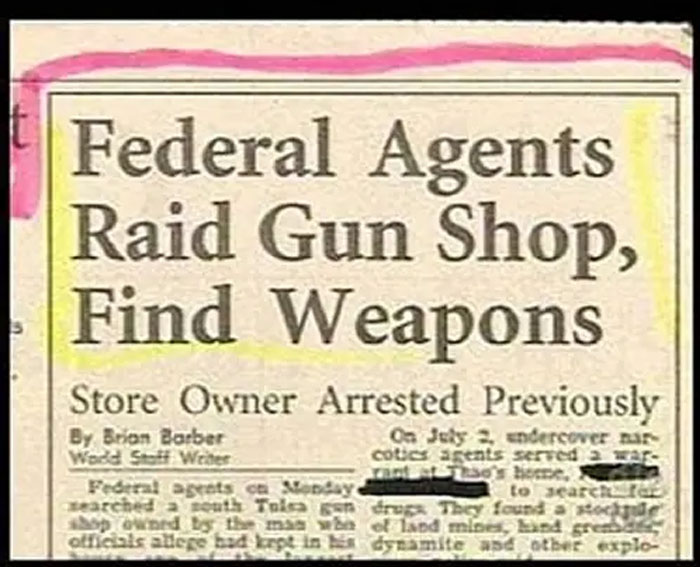 Although, if you read the story you’d see that the gun shop had more than just guns, they had land mines, grenades, dynamites and other stuff. The headline could have been written in some other way, though.