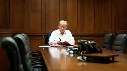 People have compared Trump’s skin tone from earlier and they said he looks significantly pale now. But we may not know if he got pale due to sickness or just because he couldn’t get his fake tan in the last few days.