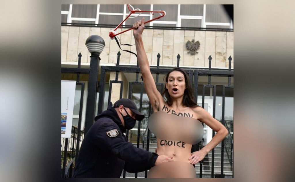 FEMEN staged a naked protest outside the Polish embassy in Kyiv, and urged for a recall against this draconian order that violates basic human rights and controls women’s bodies.