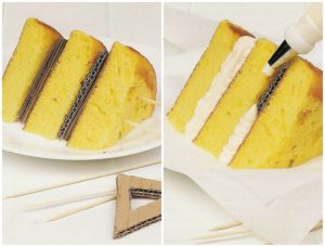 8. Layered Cakes- Have you ever wondered why the cakes we buy outside don’t look the same as in the pictures? It’s because the cakes used in advertisements have layers of cardboard topped with whipped cream or shaving foam to give it the big cake effect.