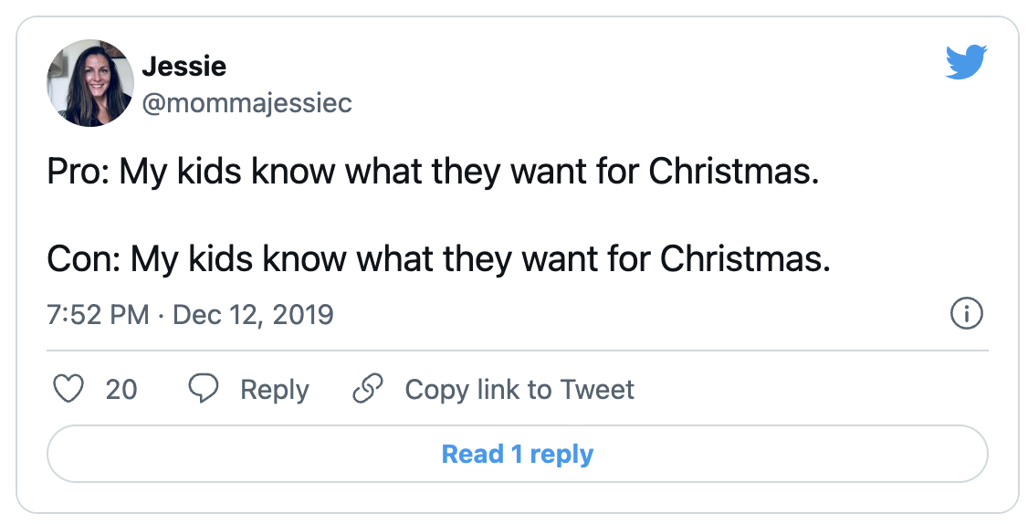 Con: My kids know what they want for Christmas.