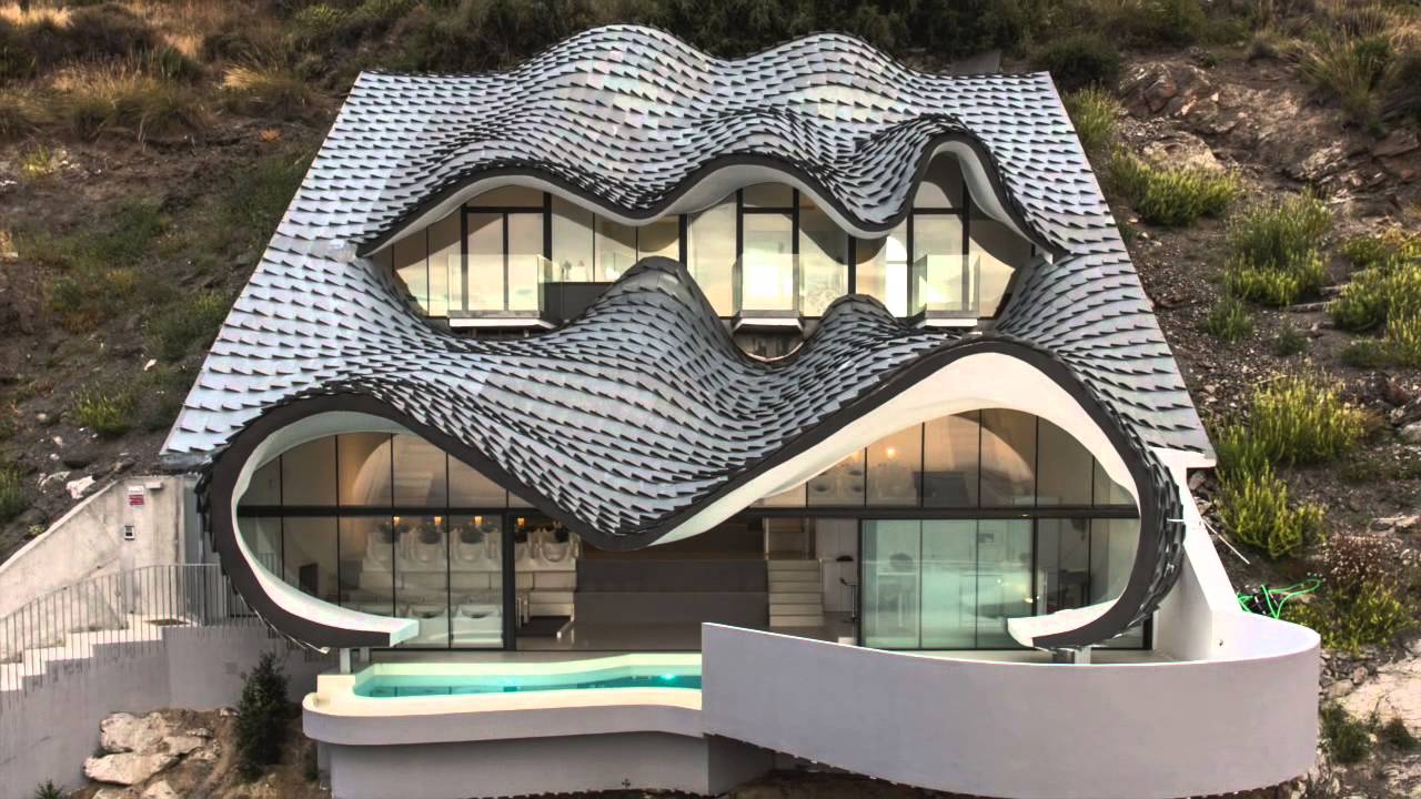 At a steep incline of 42 degrees, this house perhaps shows the limits of the impossible. From the top, it looks like a dragon and waves of the ocean.