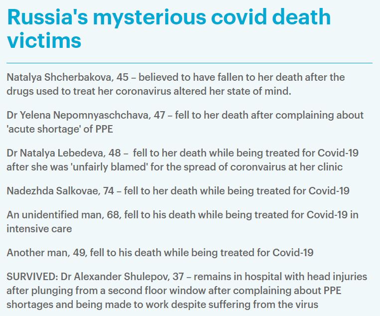 A strange story in unfolding in Russia – scientists and patients involved in the COVID-19 are mysteriously falling from the hospital windows and so far six of them have died this year.
