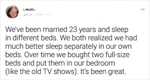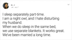 There are no rules when it comes to deciding what kind of relationship or marriage we have, as long as it’s moving in the direction of happiness. These couples prove just how sleeping separately worked for their relationship!