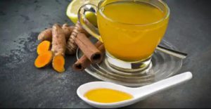 Boil water on a hot plate and add the available sweetener. When water starts to boil, chop onions, and ginger before adding them to the boiling water. Let the mix boil for a while and lower the heat before adding turmeric too. Leave the mixture on the hot plate for about half an hour. Let the mixture cool down a bit and put it in the refrigerator.
