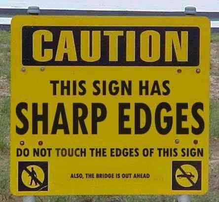 But obviously, people need to be warned about not cutting themselves on the edges of a metallic sign.